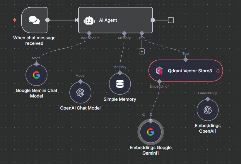 設定完成後,需要將 Qdrant 節點正確地整合到現有的工作流中。